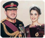 El 15 de junio de 1978 el rey Hussein contrajo matrimonio con la estadounidense Lisa Halaby, quien recibiría el titulo de reina inmediatamente después del matrimonio. Lisa Halaby trabajaba como arquitecta en el aeropuerto de Jordania, cundo fue presentada a Hussein. Terminó sus estudios con distinción en la academia Concord de Massachussets, en la Universidad de Princeton. Lisa fue bautizada por Hussein como Lisa Noor al Hussein (la luz de Hussein) y procrearon cuatro hijos, siendo uno de ellos el heredero al trono a la muerte de su hermano Abdulla. La reina Noor como se la conoce, ha desempeñado un activo papel no solo en Jordania, sino en el exterior de la misma. Actualmente se encuentra dedicada a combatir el uso de las minas antipersonales, labor que en su día desempeñó la finada Lady Diana. Con la Guerra del Golfo la situación política y económica de Jordania volvió a estar en el punto de mira. A pesar de que durante años Jordania había mantenido buenas relaciones con su vecina Irak, de la que dependía económicamente. En 1990 se sumó al bloqueo comercial en contra de Irak pero se opuso terminantemente a que se usara la fuerza militar para hacer cumplir las resoluciones emanadas del Consejo de Seguridad. Con el bloqueo Jordania perdió 570 millones de dólares, además de recibir una oleada de refugiados kurdos, iraquíes y jordanos de origen palestino que habían sido expulsados de Kuwait. Las relaciones entre Jordania e Israel, no habían sido buenas desde muchos años atrás, sobre todo por la situación de los palestinos y de los territorios ocupados. Sin embargo en 1994 y con la intervención del gobierno de Washington, Jordania e Israel establecieron un calendario para poner fin a la guerra, que incluía la repatriación de más de 60 mil palestinos que estaban en situación de refugiados en Jordania. El 26 de octubre de 1994 el rey Hussein y el primer ministro Yitzhak Rabin firmaron un tratado bilateral, en virtud del cual Israel entregó 300 kilómetros cuadrados de desierto de Jordania y delimitaron su frontera, adjudicándole al rey Hussein la custodia de los sitios sagrados del Islam en Jerusalén. Este acuerdo bilateral sorprendió positivamente a la opinión pública y le trajo muchos beneficios tanto económicos como políticos a Jordania. Después de un largo padecimiento de cáncer, el rey Hussein falleció el 7 de febrero de 1999. Antes de su muerte, el Rey cambió la línea dinástica de sucesión, por motivos de enfrenamiento familiar con su hermano Hassan. Nombró a su hijo Abdullah sucesor y como sucesor de este a su hijo Hamza, primogénito del matrimonio de Noor y de Hussein. El país que se encontró Abdullah no estaba mucho mejor que como lo encontró su padre en su día. Jordania siempre se ha visto afectada por la situación que vive el Medio Oriente. El rey Abdullah ha continuado la línea de gobierno de Hussein, ha sido un Rey justo y preocupado por su país. Se cuenta que para ver la verdadera situación de Jordania no son pocas las ocasiones en que el Rey sale disfrazado y pasea por varios rincones del país.