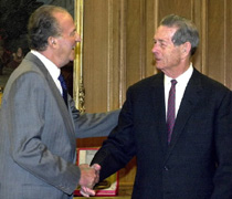 En diciembre de ese año, horas antes de que se declarara la república comunista, fue forzado a abdicar. Miguel se exilió en Londres en 1948 y fue despojado de la ciudadanía rumana, la que le fue repuesta en 1997. En la actualidad vive en Suiza, desde donde hizo una visita de tres semanas a su país en junio del año 2000 que estuvo marcada por su reconciliación con el ex presidente comunista Ion Iliescu. Foto: El Rey Don Juan Carlos I de España