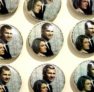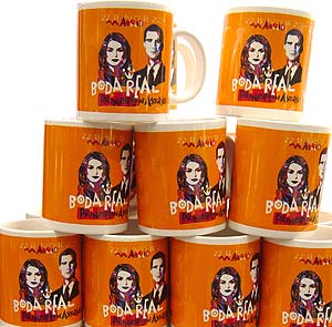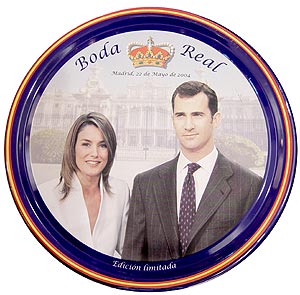 El segundo, con fecha domingo 23 de mayo, bajo el mismo epígrafe que el anterior, muestra los retratos de SAR el Príncipe de Asturias y Doña Letizia Ortiz Rocasolano, junto a sus nombres y el escudo de armas de la Casa del Príncipe. La ONCE quiere así homenajear a la Casa Real y a quien será el próximo Jefe del Estado Español y a la futura Reina de España, informó la entidad en un comunicado. Dos semanas después del Enlace, Televisión Española pondrá a la venta un DVD con imágenes de la Boda Real. Los beneficios serán destinados íntegramente a las víctimas del 11-M. Souvenirs Además de los objetos más institucionales como las monedas y sellos conmemorativos de la Boda Real, se han realizado todo tipo de souvenirs populares para dejar huella de este acontecimiento histórico.