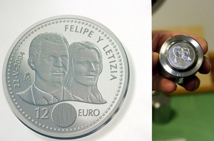 Como hecho reseñable, cabe destacar, que esta es la primera vez en la tradición numismática española que una boda real aparece reflejada en una moneda. El único referente similar es la moneda de 500 pesetas que se acuñó con motivo de las bodas de plata de los Reyes. La moneda de plata de 12 euros que se emite para el público en general es la tercera de estas características que se emite, ya que las anteriores tuvieron como motivo la Presidencia de España en 2002 y el 25 aniversario de la Constitución en 2003. Sello conmemorativo